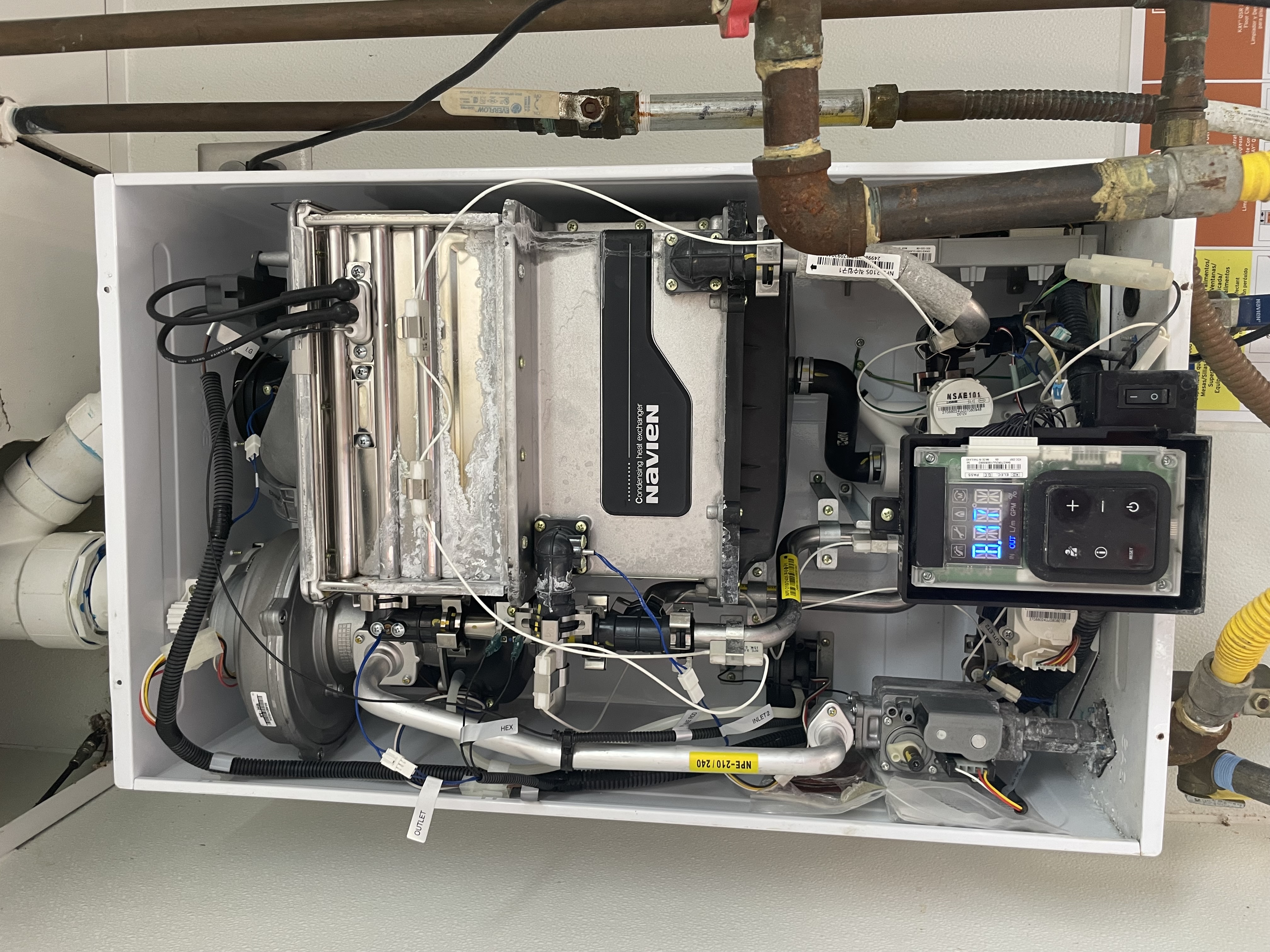 A restaurant owner in Atascocita TX contacted Cal-tex plumbing regarding a broken tankless water heater. The restaurant was not able to run without hot water so the problem had to be resolved quickly. Cal-tex plumbing immediately headed to the location and diagnosed the problem. We explained to the manager that the heat exchanger was leaking due to improper installation. We contacted Navien technical support and they requested pictures of the unit and installation setup. Unfortunately Navien could not honor the warranty due to the improper tankless water heater installation. Cal-tex plumbing was able to find a supplier nearby that had the unit in stock. Our employee stayed after hours to correct the piping needed to install the unit correctly. We advised the business owner to do routine maintenance to assure that it will continue to run correctly for years to come.